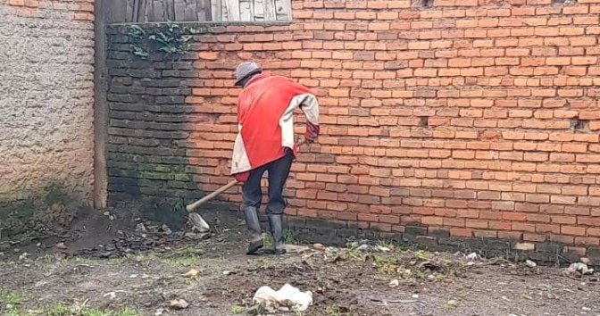 Abashinzwe isuku barabutswe umunyamakuru bihutira kujya gukuraho umwanda (amazirantoki) wuzuye inyuma y’inzu z’amaduka