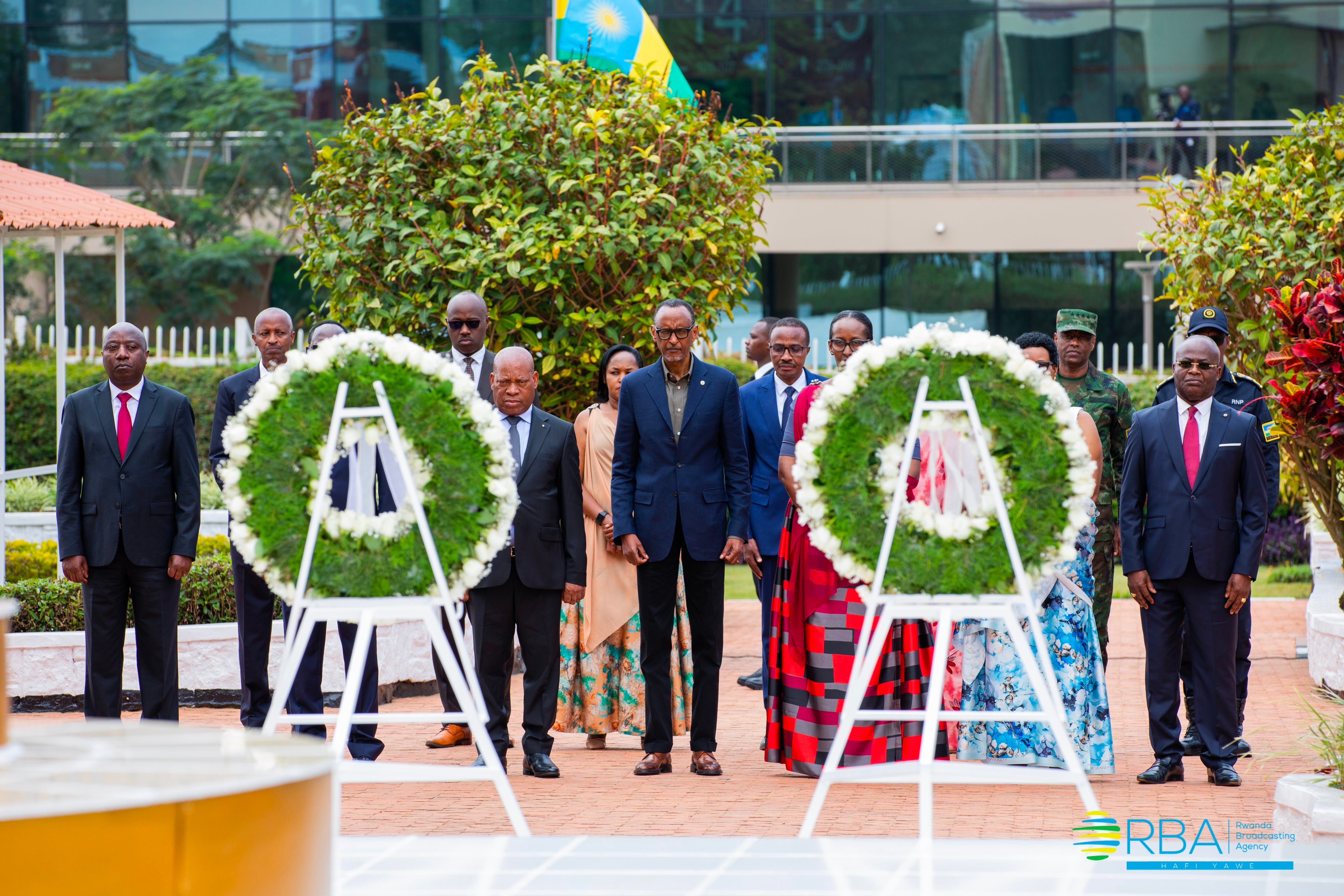 Perezida Kagame na Madamu Jeannette Kagame bashyize indabo ku kimenyetso cy’Ubutwari bunamira Intwari nk’icyimenyetso cyo kuziha icyubahiro kubwo kwitangira u Rwanda.