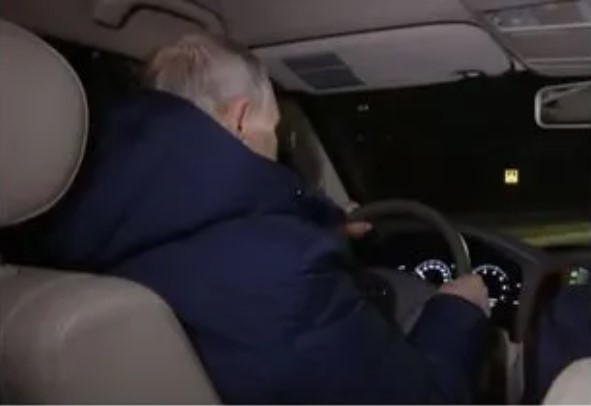 Amashusho agaragaza Perezida Putin atwaye imodoka mu muhanda, ndetse aganira n’abaturage.