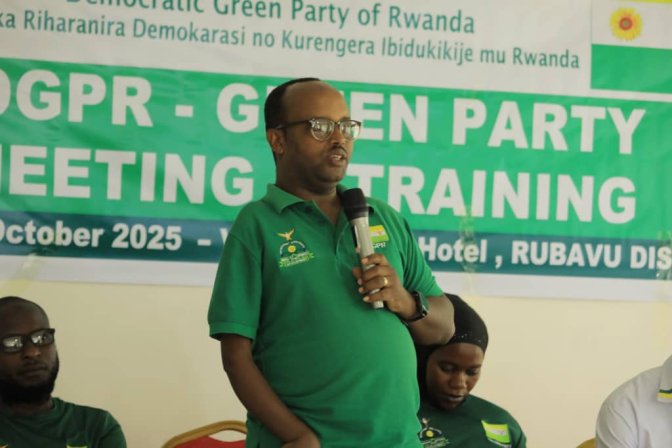Ku Cyumweru, tariki ya 12 Ukwakira 2025, ibikorwa by’Ishyaka Democratic Green Party of Rwanda, DGPR, byakomereje mu Karere ka Rubavu, aho habayemo amahugurwa ahabwa abarwanashyaka ba DGPR ku miyoborere, demokarasi, ubumenyi mu kurengera ibidukikije, kwiteza imbere, ndetse no gukoresha imbuga nkoranyambaga n’ibindi.