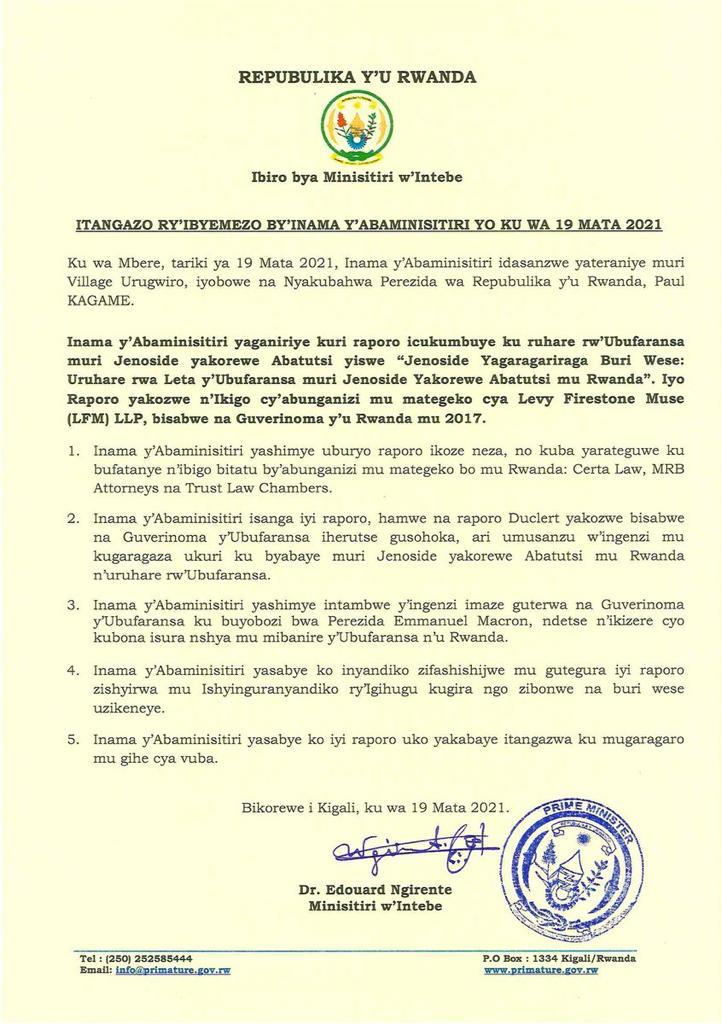 Iyi nama kandi yemeje ko amakuru ri muri raporo y’uRwanda azashyirwa ahagaragara akabonwa na buri wese uyashaka.