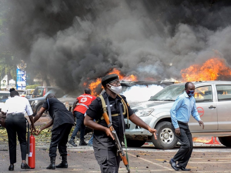 Ku wa Kabiri tariki ya 16 Ugushyingo nibwo abantu batatu biturikirijeho ibisasu mu Murwa Mukuru Kampala, imibare ya polisi ivuga ko byahitanye abantu batatu bikomeretsa abandi 37 kandi benshi muri bo bari abapolisi.