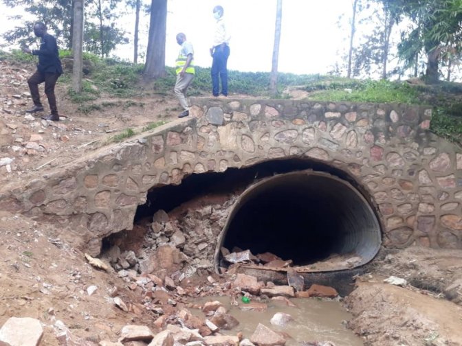 [Ikitwa Bizi cyacagamo amazi munsi y’umuhanda cyari cyangiritse bikomeye bituma umuhanda ucikamo kabiri