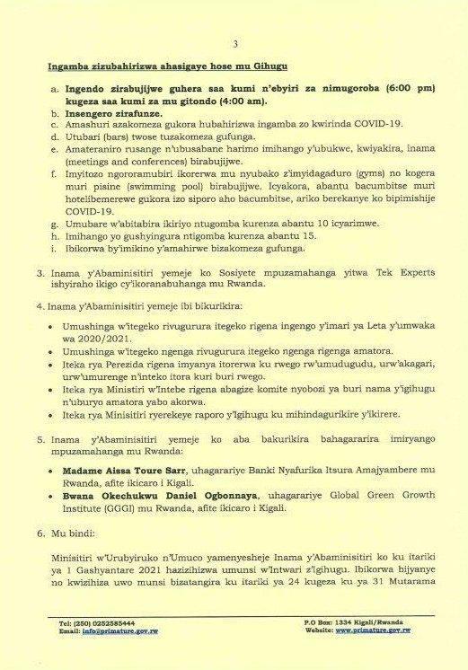 Umujyi wa Kigali washyizwe muri Guma mu Rugo nyuma.y’isesengura ry’Inama y’Abaminisitiri yateranye kuri uyu wa mbere tariki ya 18 Mutarama 2021 i Kigali iyobowe na Perezida Paul Kagame.