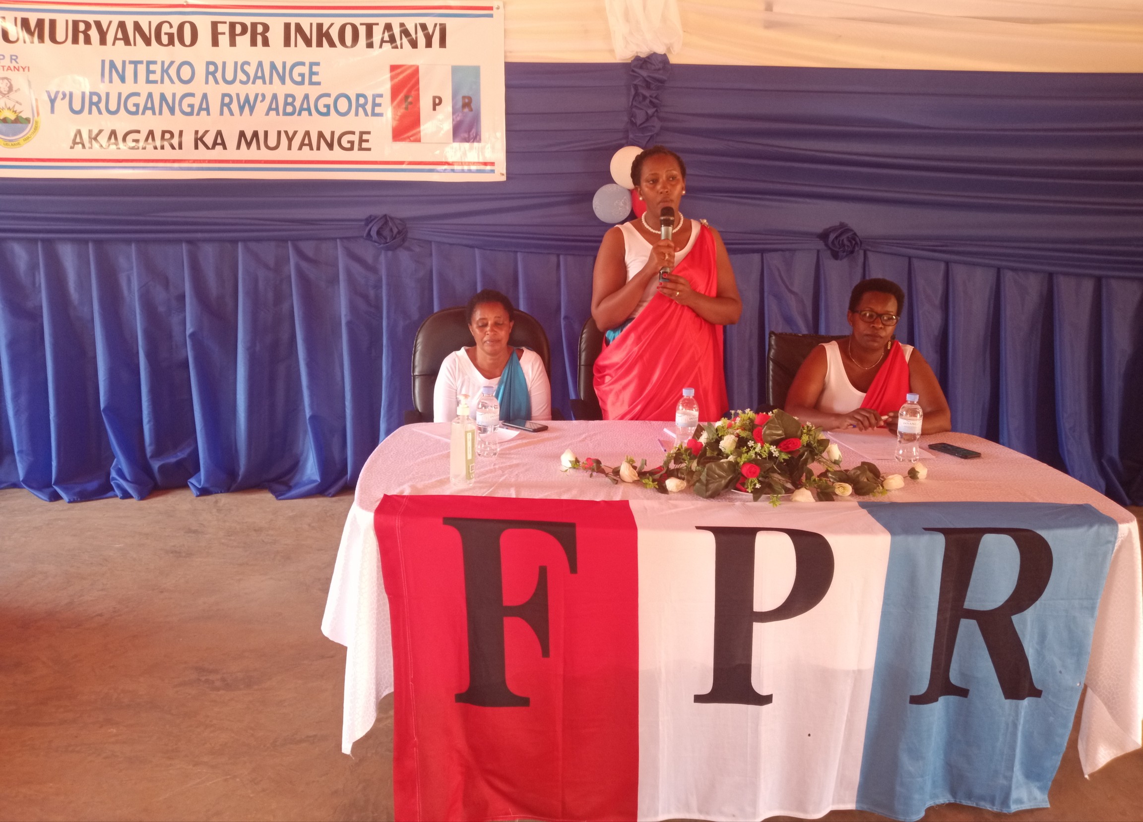 Babigarutseho mu Birori by’Inteko Rusange y’Urugaga rw’Abagore bagize Umuryango FPR Inkotanyi ku rwego rw’akagari ka Muyange kuri uyu wa Gatandatu.
